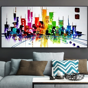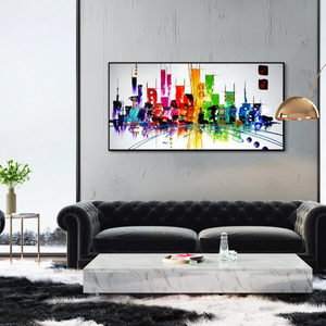 What do you wish for in the future? We certainly wish for more colors and art. This unique handmade artwork shows a futuristic, technicolor city from the year 2040. If all cities looked like this one, the future is bright!