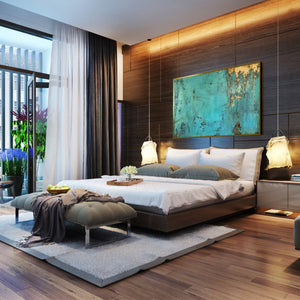 With a bright blue background and stunning golden details, this minimalist painting brings the best of nature to mind. The name "Ace" highlights its excellence, resembling golden rays of sunshine on a clear, blue day.