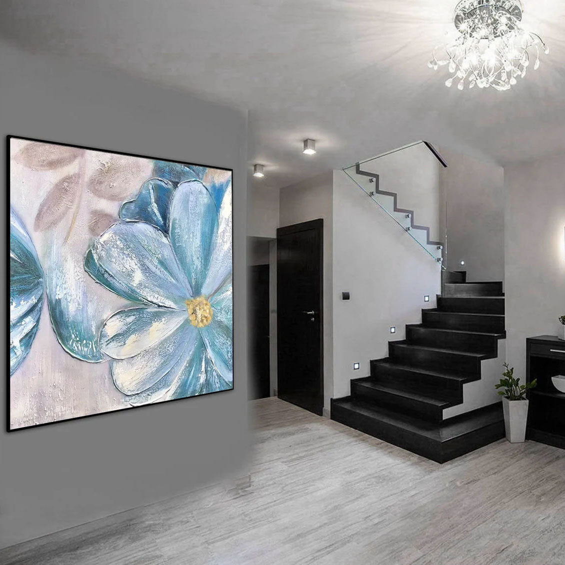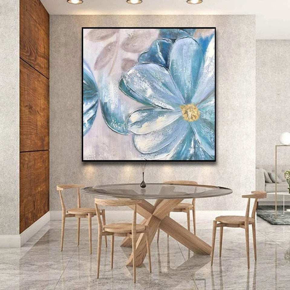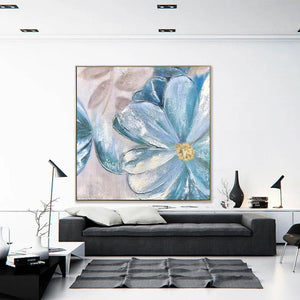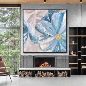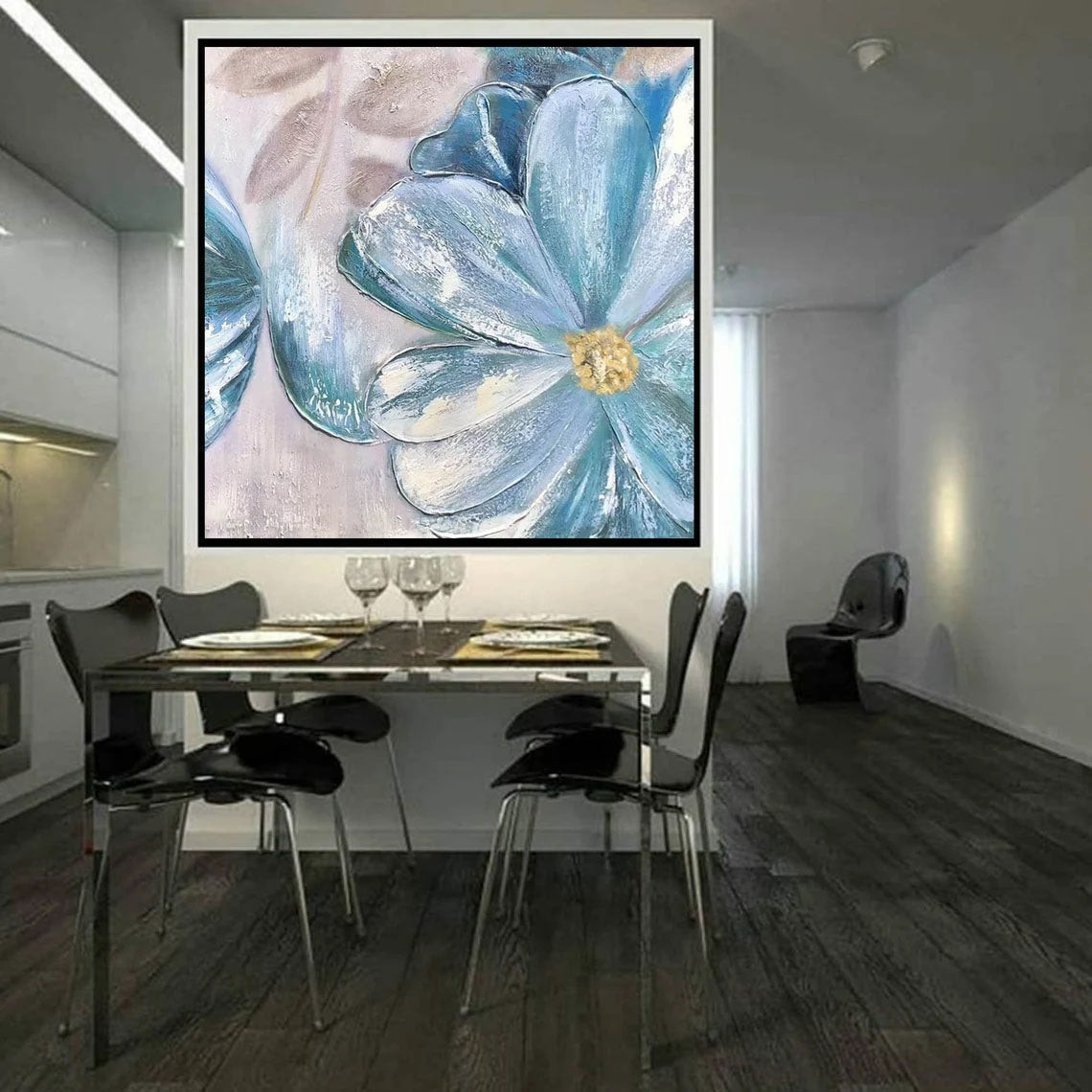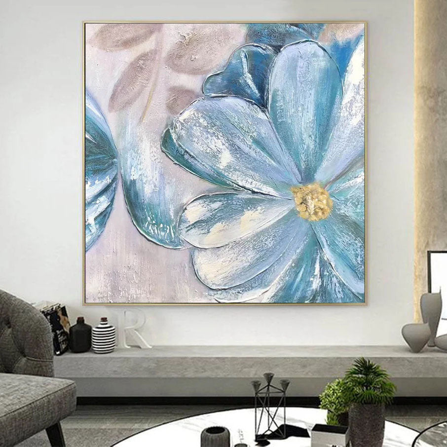 This artwork brings a gentle bloom to life with textured petals and calming blue tones. A timeless reminder of nature's serene beauty, it radiates tranquility and grace. Perfect for enhancing any space, it offers a blend of sophistication and calm.