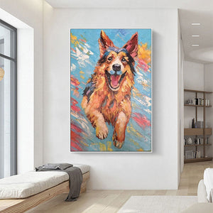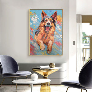 With a look of sheer delight, Baxter sprints forward, his fur flowing and eyes sparkling. This artwork brings Baxter's contagious energy to life, making it a wonderful addition to brighten up your home.