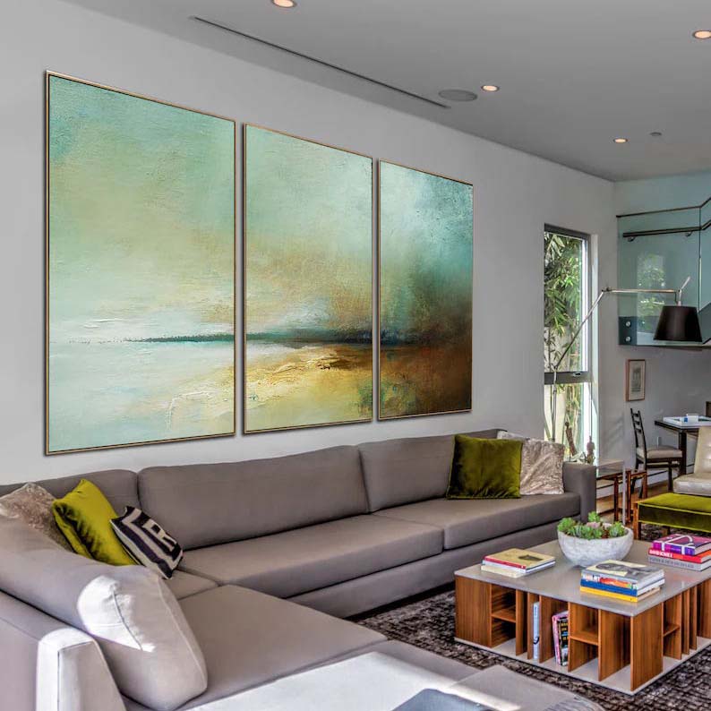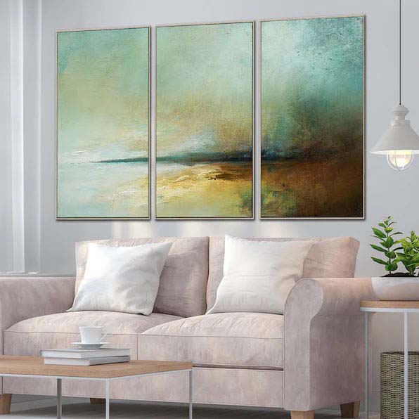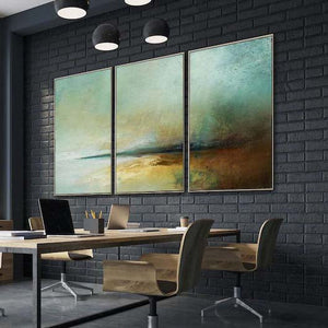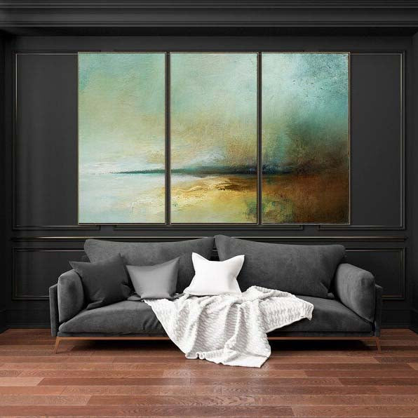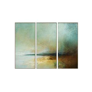 Beautiful and melancholic, like a beach at night. No sunlight to enjoy the warmth, only the silent rhythm of the crashing waves. This canvas set portrays a stunning landscape in a distinctive style. So stunning, that you almost want to dive into the canvas!