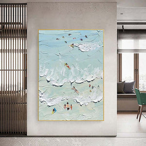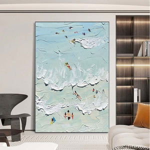 Capture the spirit of summer with Beach Days. The unique texture and vivid colors of this painting depict a lively beach scene, bringing warmth and vibrancy to your decor in an eye-catching style!
