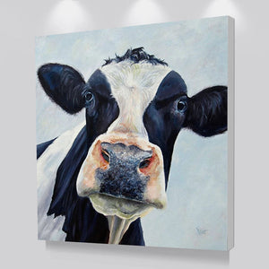 Look whose friendly face popped in to say hello! It is our furry friend 'Betsy'! With friendly eyes and beautiful details, this jolly cow will always put a smile on your face. Create a comical and rural atmosphere wherever you display this painting!