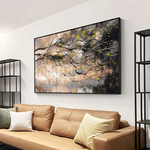 Where green turns to brown and nature prepares itself for the harsh winter times, autumn. Its strong and harsh winds also bring a feeling of melancholy and nostalgia, perfectly portrayed in this elegant, yet dynamic art piece!