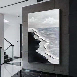 Experience the raw beauty of Black Sands. This artwork beautifully contrasts dark and light, creating a stunning visual that brings depth and sophistication to any space.