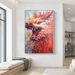 Let Blazewing set your décor ablaze. With its fiery palette and bold brushstrokes, this striking dragon artwork infuses any room with energy and intensity, making it a focal point anywhere!