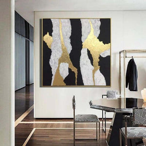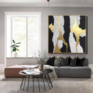 Like two exquisite caresses of paint stroked across the canvas, this stunning art piece captures anyone in an instant! Being composed with contrasting black & white and a lush golden touch make this art piece suited for any type of frame or interior!