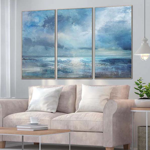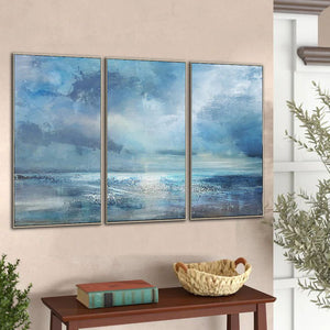 Being a castaway on a deserted island in the middle of the ocean is melancholic yet beautiful. Surrounded by all the beauty and bliss but no one to share it with. This canvas set captures this feeling graciously and creates a magical maritime atmosphere!