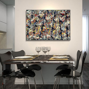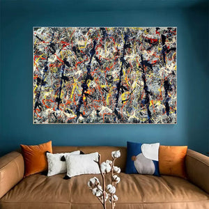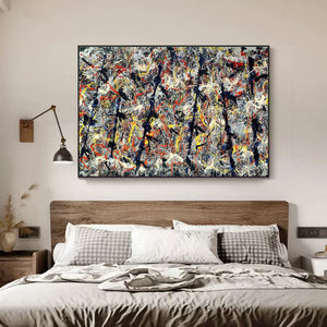 This captivating piece enchants with its ethereal beauty. Swirls of celestial blues and shimmering golds dance across the canvas, creating a sense of wonder and awe. The abstract brushstrokes pull you to heavenly depths, like a cosmic voyage for the eyes.