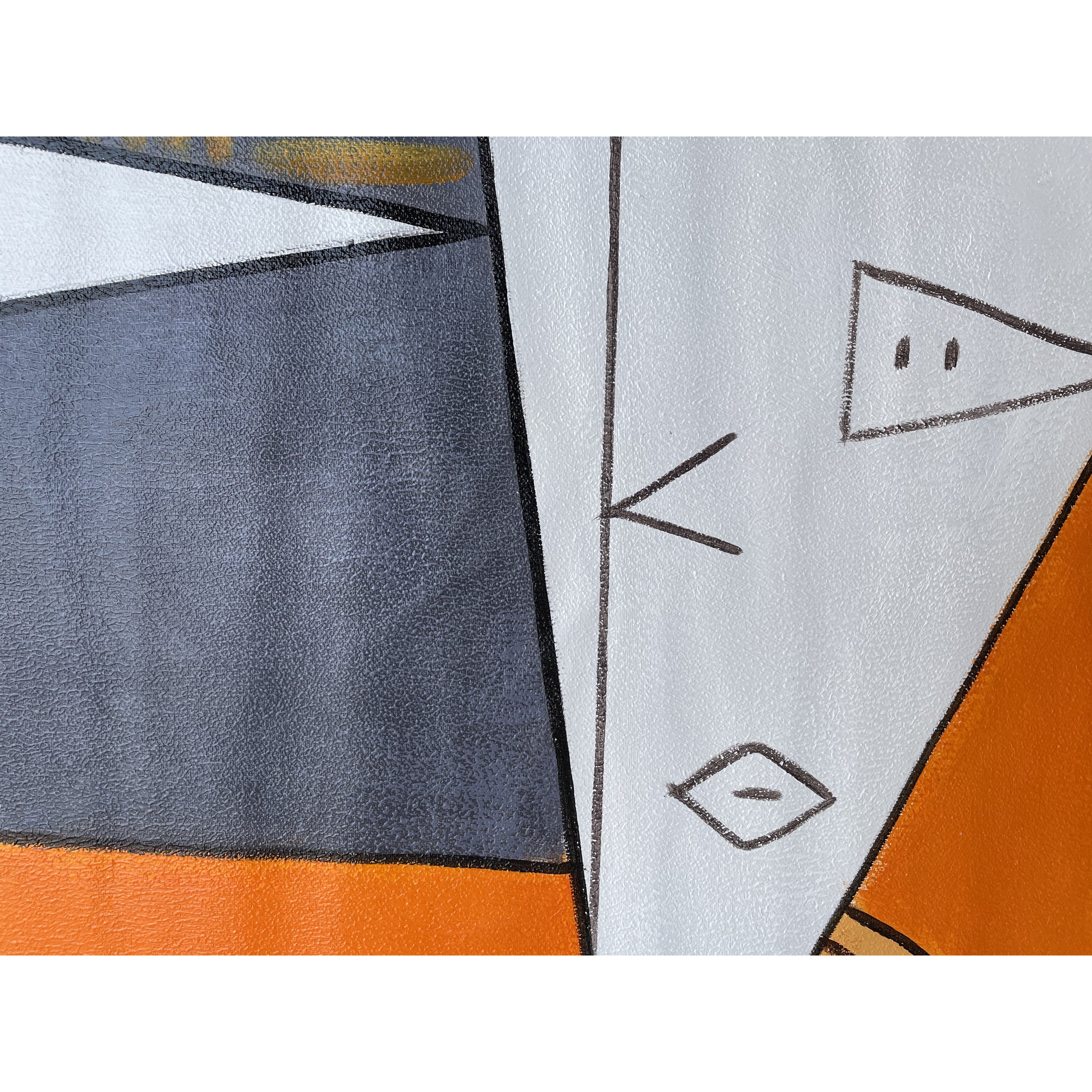 This happy abstract painting brings joy to any room or space! With its subtle and warm colours, it has the power to cheer anyone up! Inspired by Picasso's cubism painting style, this art piece has a professional yet jolly vibe.