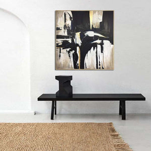 Worlds collide in this true collision of paint! The dynamic brushstrokes give the piece a sense of movement, making it a true eye-catcher! The use of mainly subtle colors makes this piece suited for any space!