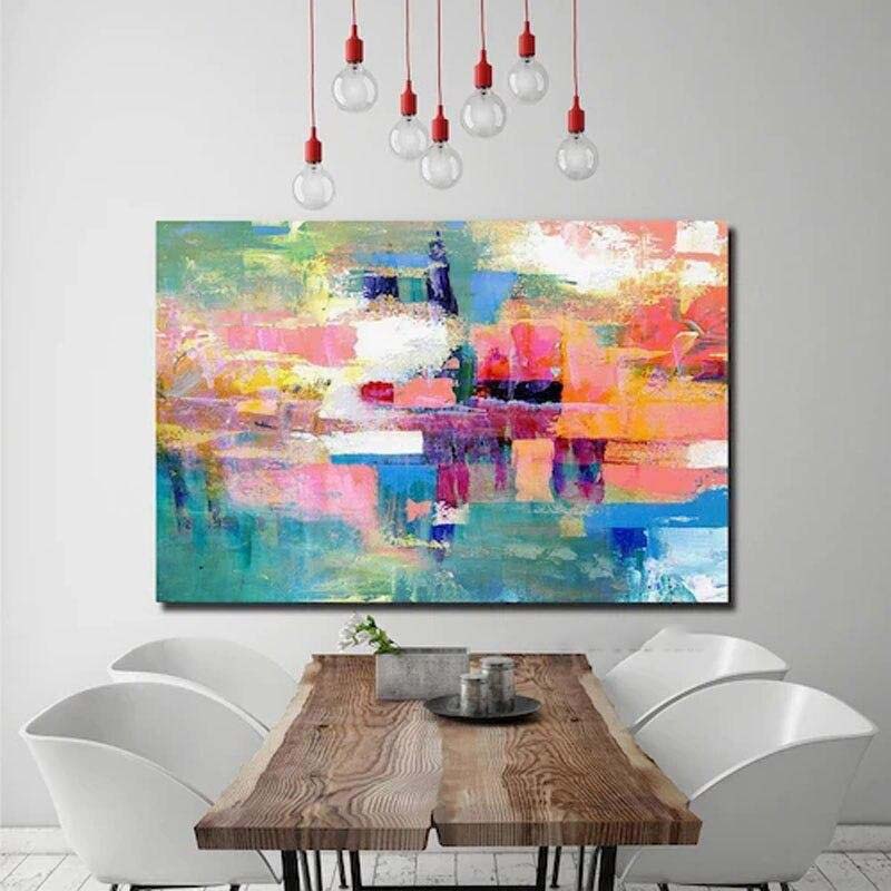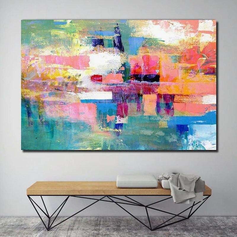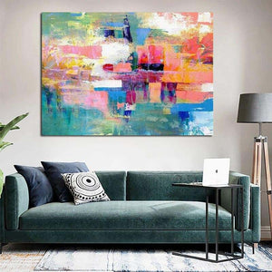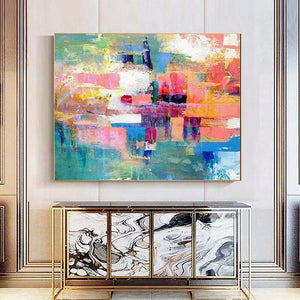 An artwork can never have too many colors, right? Well, this colorful piece definitely proves that! With a lot of different colors all blending together beautifully, this abstract composition is a rich and vibrant addition to any home interior!