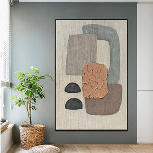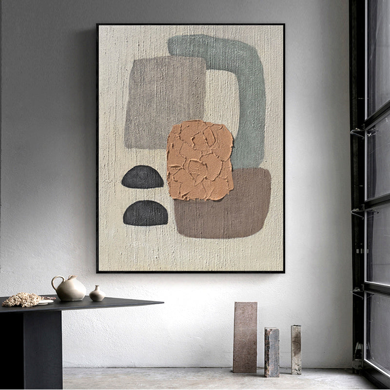 A unique artwork all in harmony with itself'. This artwork 'Concords' tells a story of different colored shapes all balancing together beautifully. Its subtle color palette makes this painting suited for any type of home interior!