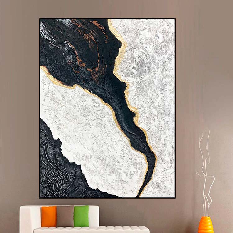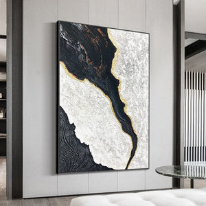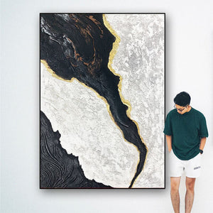 Dark Flow captures the striking contrast between light and dark, with a golden streak flowing like liquid energy. This bold statement piece feels alive, commanding attention in any space. Let the powerful motion of this artwork light up your interior with its elegance and mystery.
