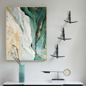 This amazing, abstract art piece portrays tremendous turquoise waves blending effortlessly with graceful, golden shores.