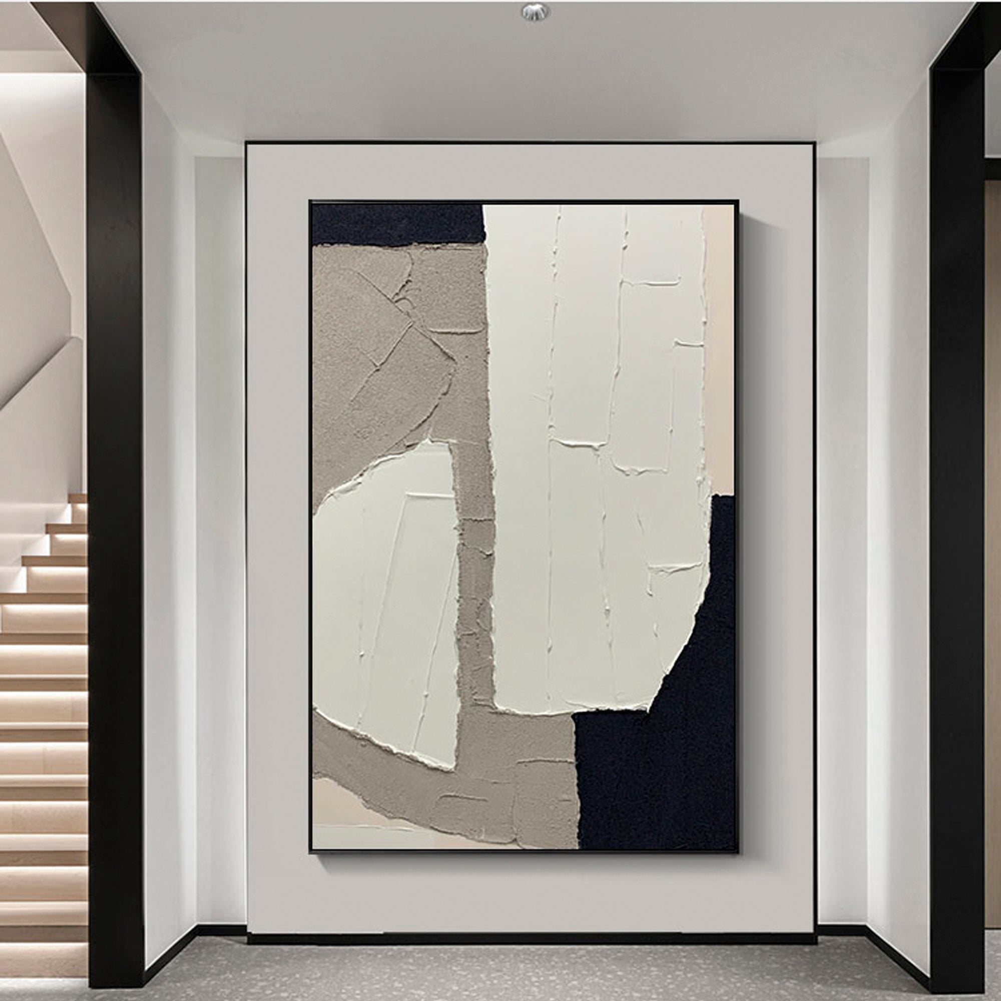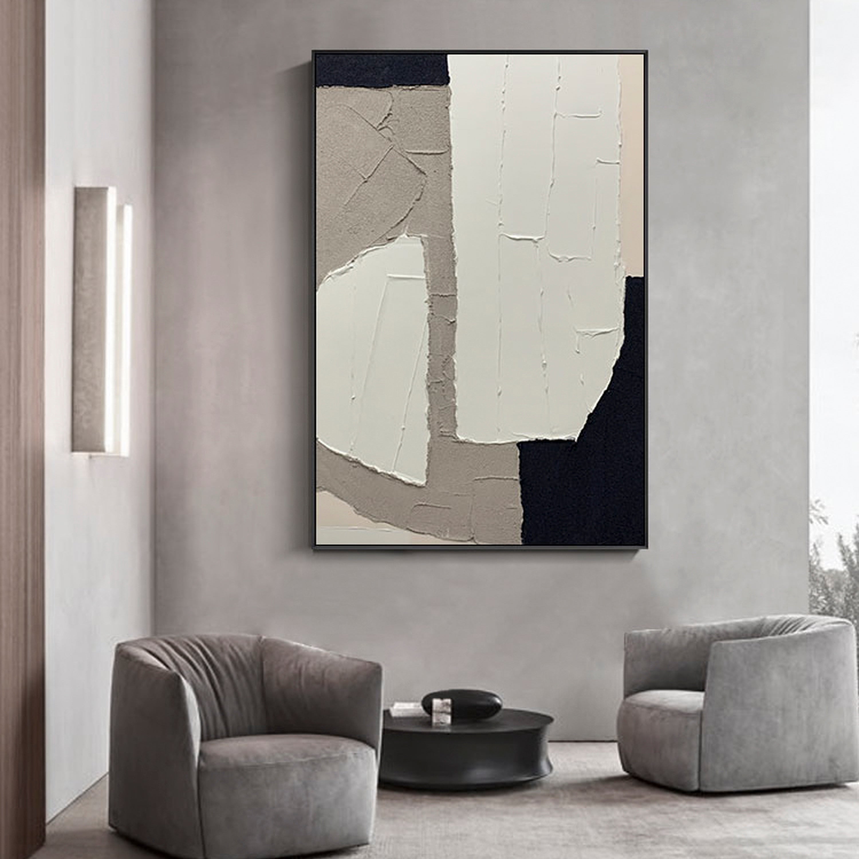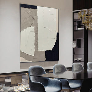 This modern artwork combines a strong, contrasting composition with a special thick-layered painting technique to create a unique eye-catching painting.