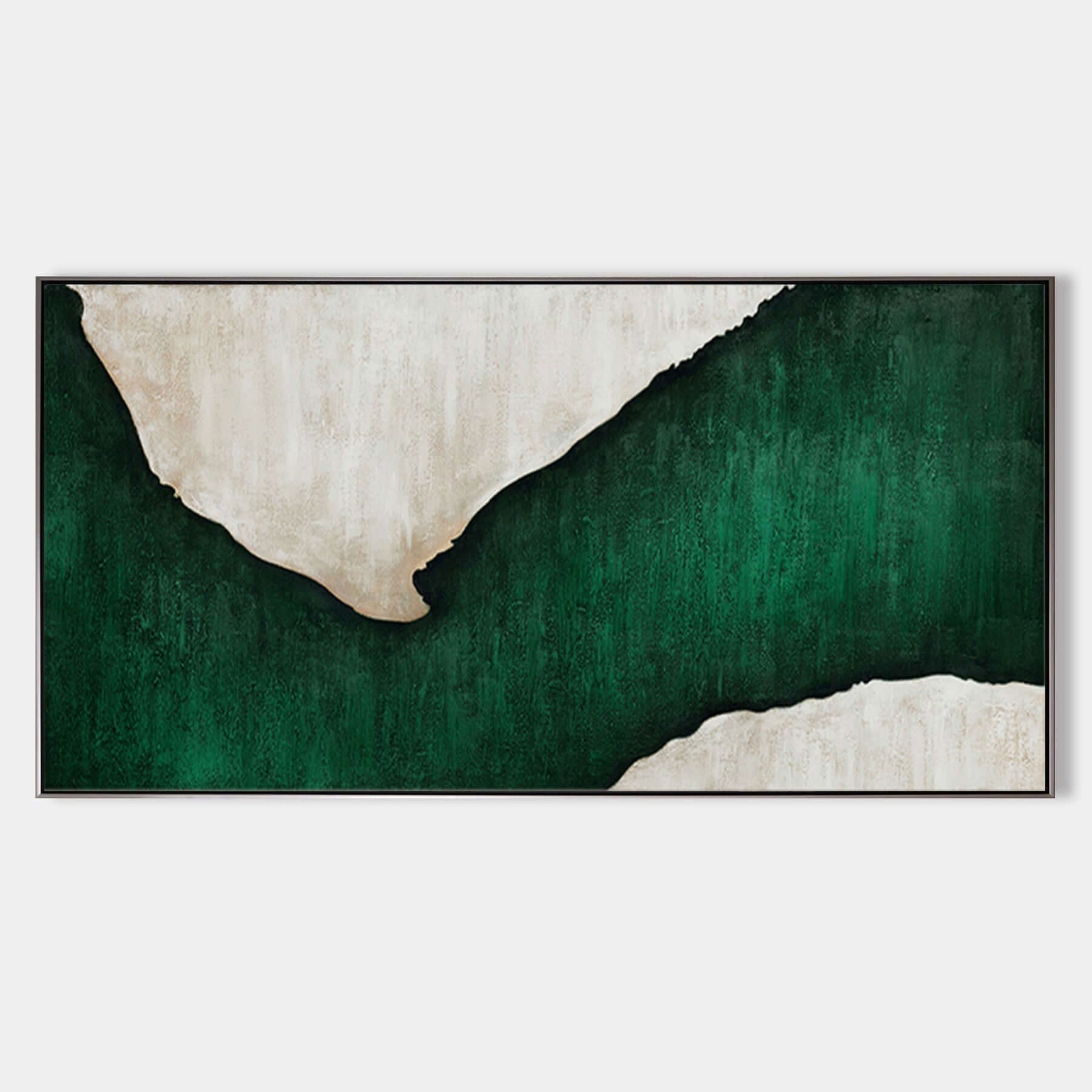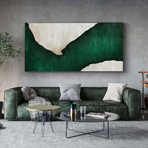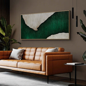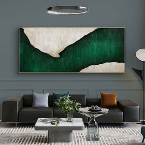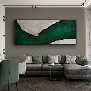 Emerald Flow is a beautiful modern interplay between rich, white colors and deep emerald hues. The flowing composition makes this piece suited for any type home interior, creating a serene and classy atmosphere.