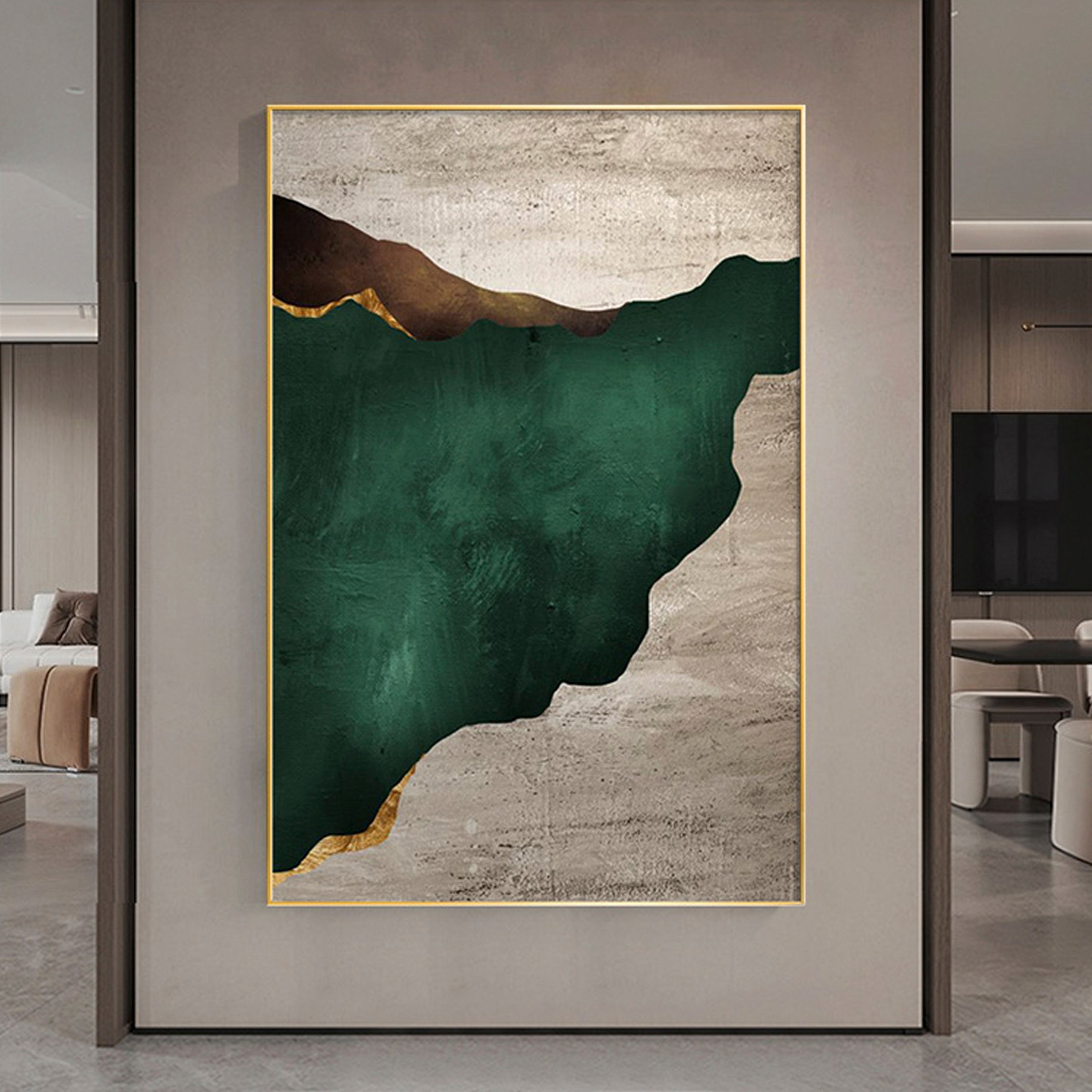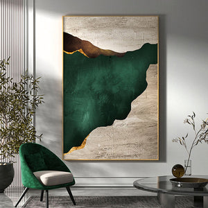 After years and years of hard pressure, beautiful emerald rocks emerge. This fantastic artwork shows the beauty of nature's gemstones with a modern twist to it. Its soft and subtle colors make this painting suited for any home interior!