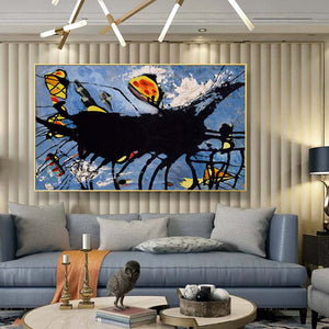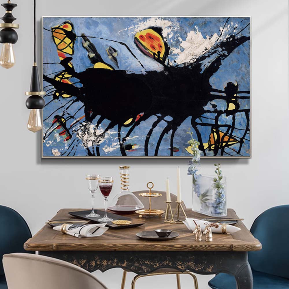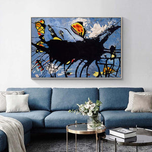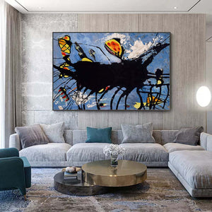 Against a serene blue backdrop, a strong black spot emerges, symbolizing the nexus of endings and beginnings. End/Start is a thought-provoking piece that adds design and a uniqueness to any space or room.