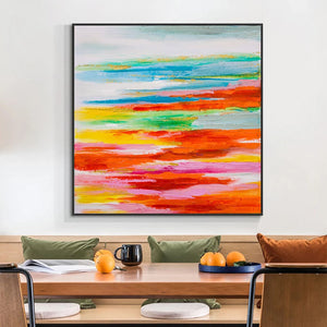 The way this unique artwork is painted, it seems almost as if the sea is endless. Wave after colorful wave is portrayed, one more vibrant than the other. Making this a colorful addition to any space or room!