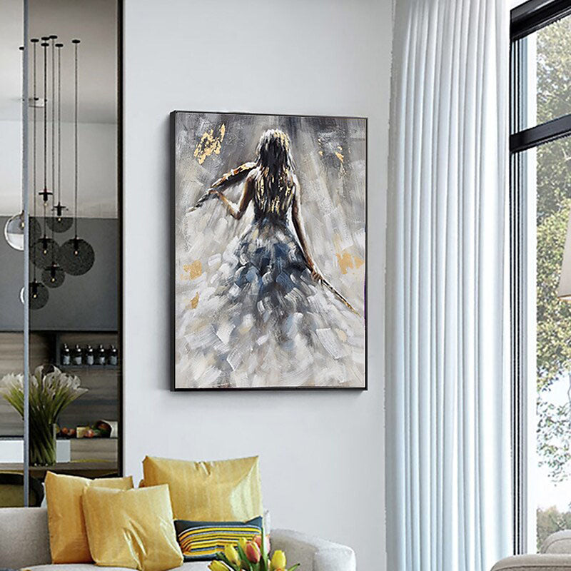 The beauty of Eternity's Echo lies in its ability to capture a timeless moment. The woman’s flowing dress and the soft notes from her violin seem to linger in the air, creating an atmosphere of peace and elegance that enhances any space or room.