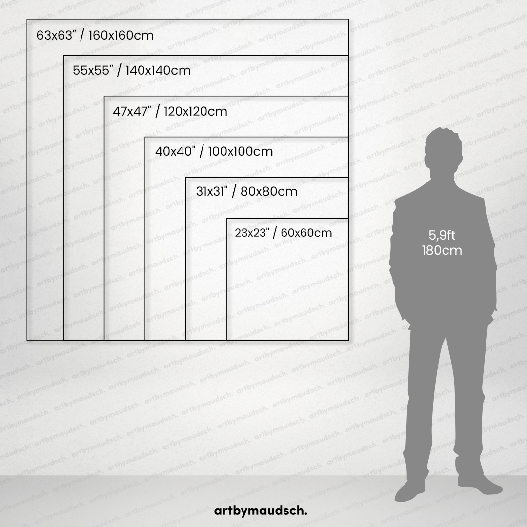 23x23" / 60x60cm, 31x31" / 80x80cm, 40x40" / 100x100cm, 47x47" / 120x120cm, 55x55" / 140x140cm, 63x63" / 160x160cm |
