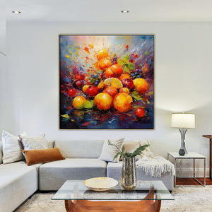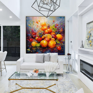 Experience a still life like no other! This modern take on a classical concept just bursts with color and vibrancy. The unique painting style make it seem like the composition is in motion, creating a dynamic feeling!