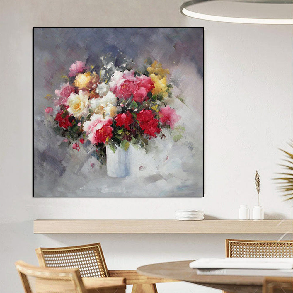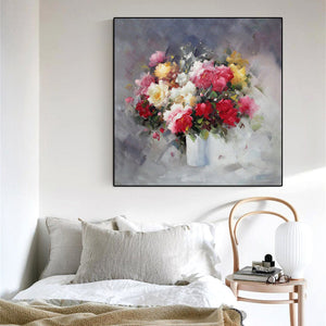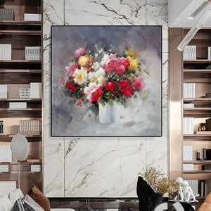 Make your walls bloom with life. This painting's rich colors and textured details create a floral masterpiece that feels both timeless and fresh, effortlessly brightening any room.