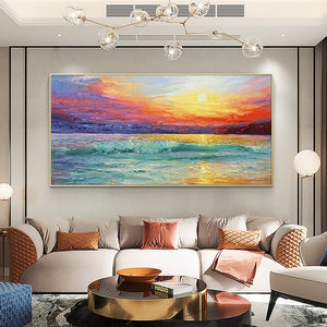 Truly an exceptional horizon this is! With stunning, subtle colors and a unique technique to create the realistic, three-dimensional beach foam, this unique piece will enhance any type of home interior, giving off a beautiful, maritime ambience wherever it's portrayed!