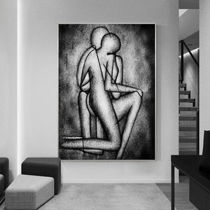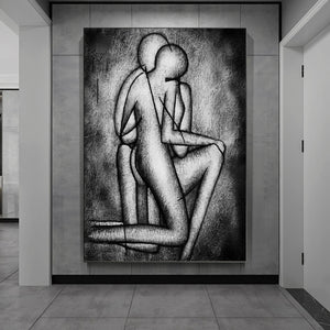This unique black-and-white painting portrays two mysterious figures in the dark. Who are they? What are they doing? The only thing we know is that this artwork catches our attention, and doesn't let it go!