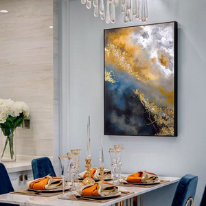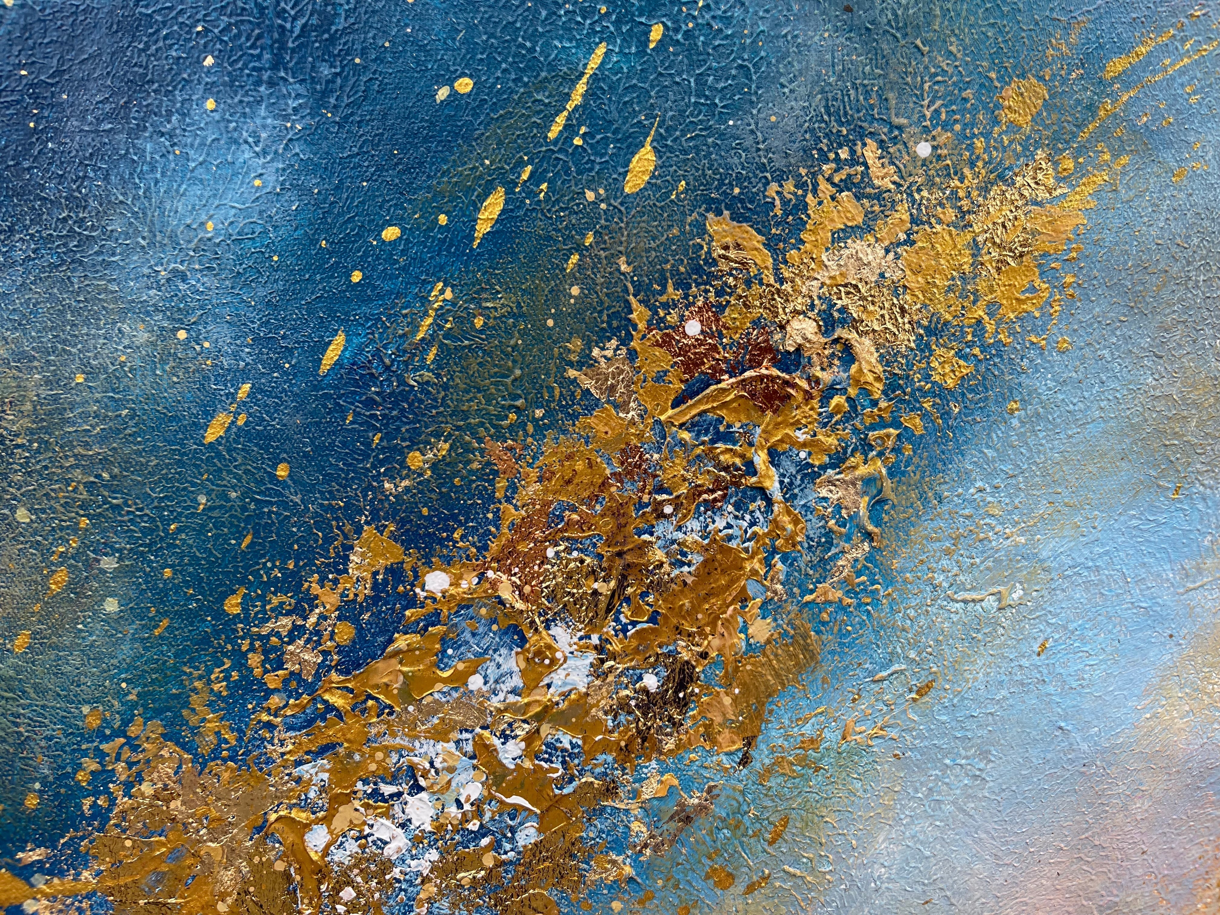 Some believe our final destination is a place like heaven, high in the clouds. This idea is beautifully portrayed in this abstract art piece. With golden details and a stunning composition, this piece creates a heavenly atmosphere wherever portrayed.