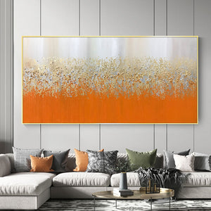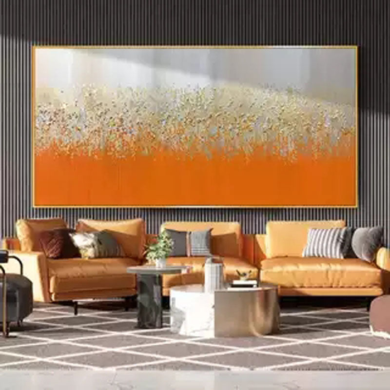 Inspired by the increasing impact of global forest fires, ‘Forest Fire’ merges beauty with a message. The fiery oranges blend with metallic accents, symbolizing both destruction and hope for change. This artwork is a bold addition to any room and a stunning reminder to act for nature’s future.