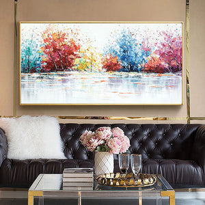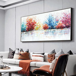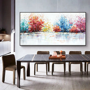 Let this beautiful artwork take you to more colorful places! With multiple different colors effortlessly flowing into each other, this soothing art piece is fit for any type of home interior, enhancing the existing colors while giving off a calm atmosphere.