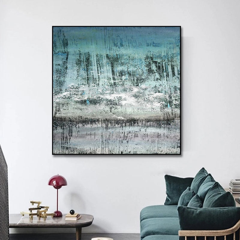 Abstract winter never looked so good. The textured technique creates a unique frozen effect, blending icy blues and grays into a stunning visual. It’s an artwork that’s as refreshing as a cold morning.