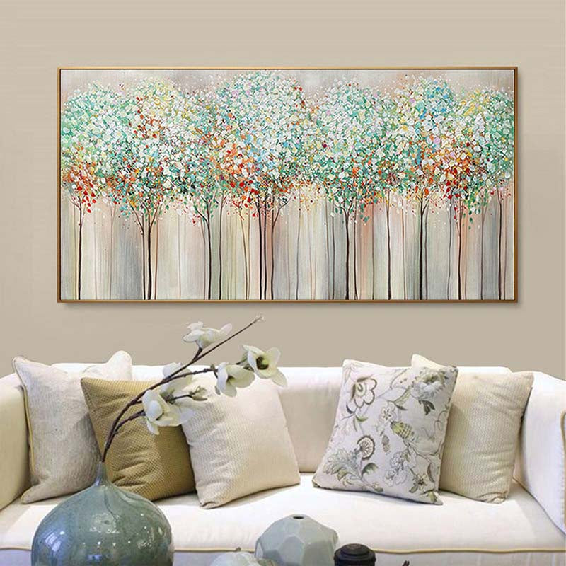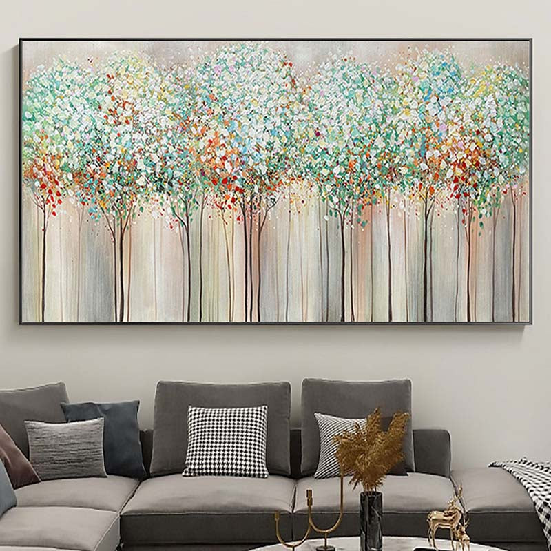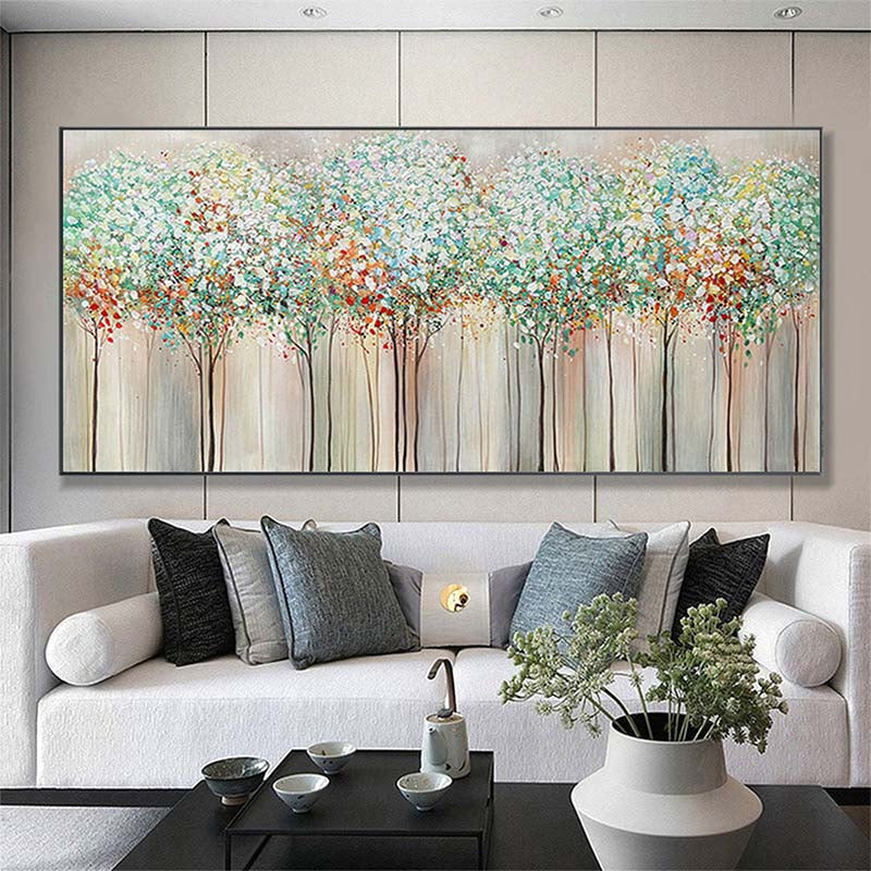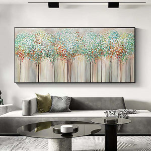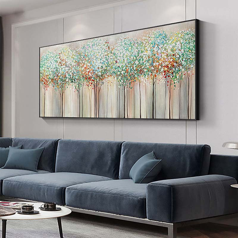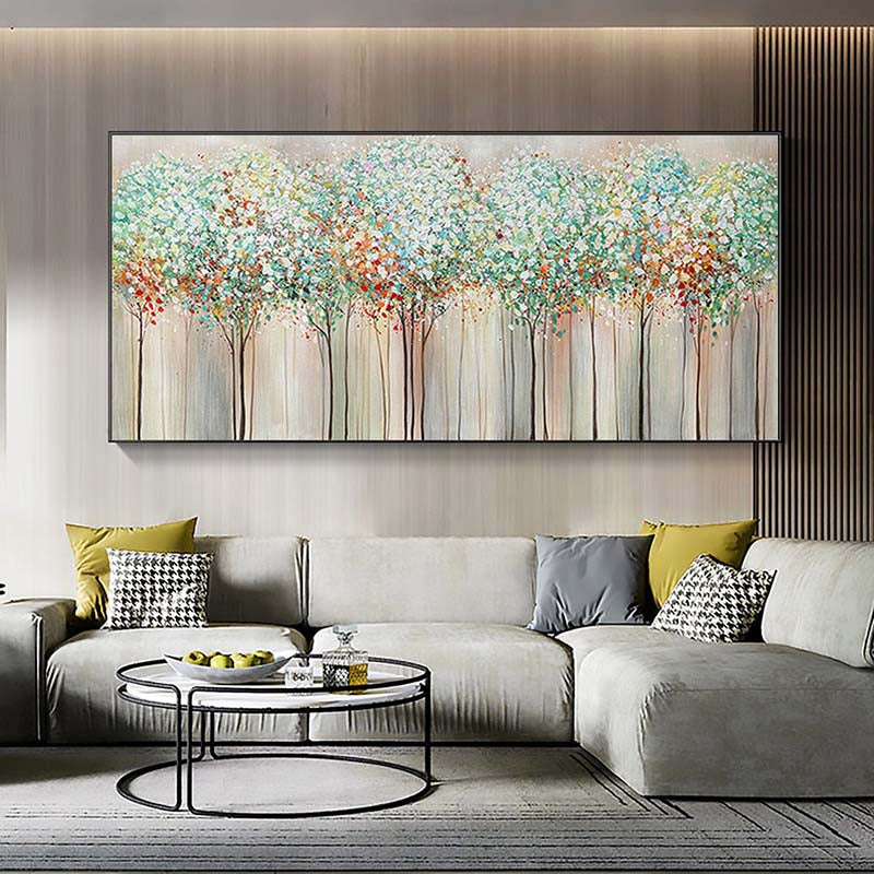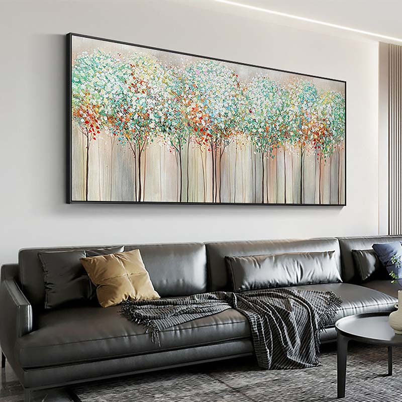 Experience the majesty of a towering woodland with this stunning artwork. The vibrant colors and detailed tree trunks bring the beauty of nature indoors, making it a delightful addition to your home décor