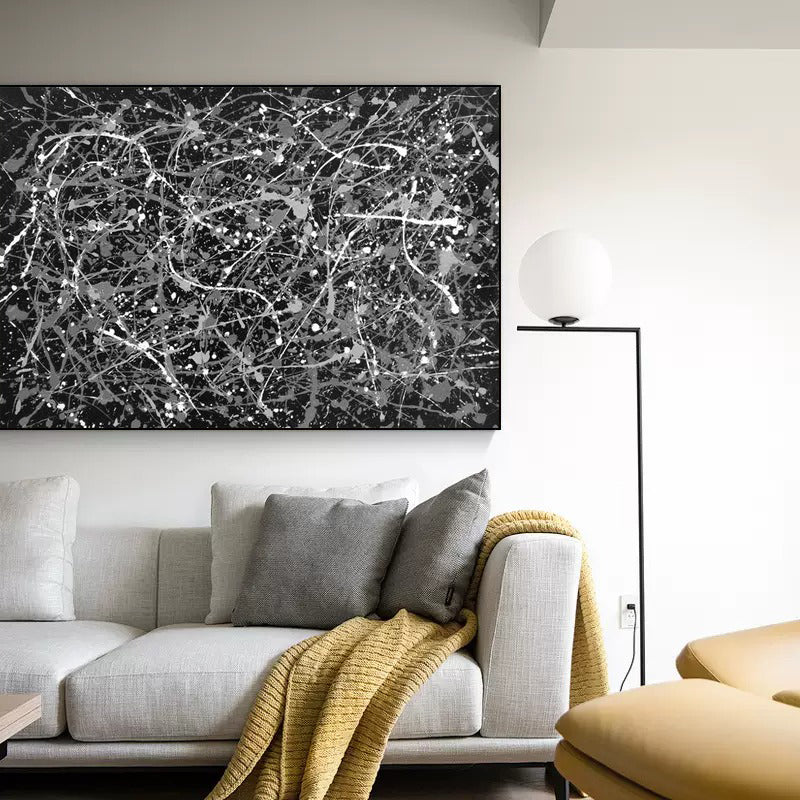Like hundreds of tiny glowing lights swirling across the canvas, this dynamic artwork lights up the dark times! The intricate white brushstrokes bring hope and life into the endless light, cheering you up whenever you see them dance!