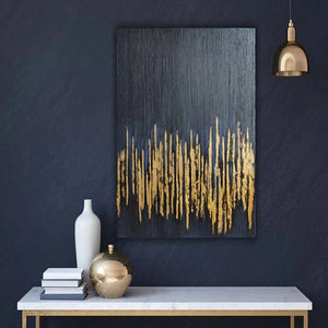 Gold Stripes is a bold statement of elegance. The striking gold streaks against the deep black background create a modern masterpiece that just breathes luxury and refinement. Perfect for adding a touch of sophistication to your home interior!