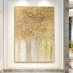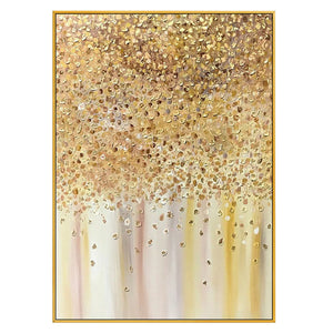 Golden Seeds' is a painting you'll have trouble comparing to any other work of art. It's so unique! A golden rainfall of wonderous gold... The composition makes you stand in awe of the artist's ability. This piece is for anyone interested in expanding their mind, as well as adding elegance to their space!