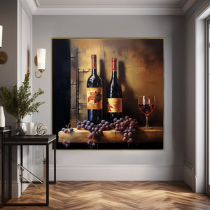 In Grenache, you're invited to a symphony of taste and aesthetics. Two wine bottles and ripe grapes invoke a sense of nostalgia, a tribute to the timeless pleasure of fine wine and the beauty of the vine.