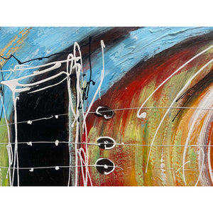 Behold a Spanish guitar, its portrait alive with vibrant hues in a unique color scheme. The artist's touch brings out the soulful essence, creating a visually striking ode to the passionate spirit of Spanish music.
