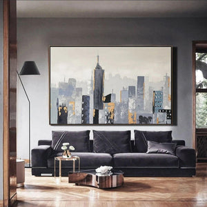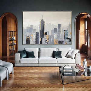 This artwork has a unique composition! Portraying a city highrise in a distinctive style, this piece creates a wondrous atmosphere! Its subtle colors and fine lines make this piece a pleasure to look at, every single time.