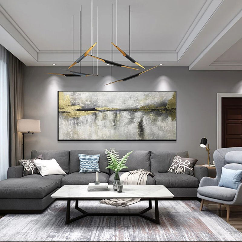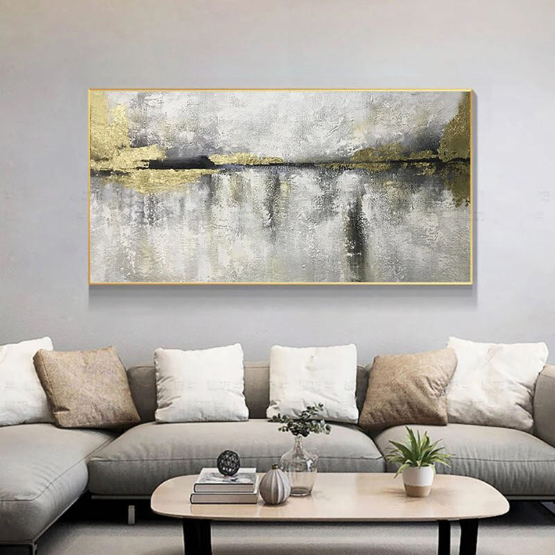 Like a golden reflection at sunset, this painting brings a sense of calm and beauty to your space. The soft textures and shimmering highlights feel as serene as a quiet moment by the lake.