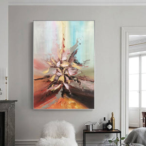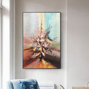 Like a true implosion of art, this painting comes at you with its dynamic composition, unique color palette, and stunning details! There is so much to see with this painting, that it'll draw your attention, time after time!