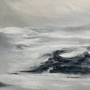 We are floating on cloud nine with the beauty of this artwork! 'In the Clouds' is a modern, impressionistic artwork that displays mighty mountains towering above a soft blanket of clouds. With beautiful contrasts, you can get lost in this piece for hours!