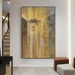 On this mystic island, you will find the most stunning of sunsets! The golden rays of sunlight glow up the surroundings to create a fantastic phenomenon. The subtle color scheme makes this painting suited for many different atmospheres!