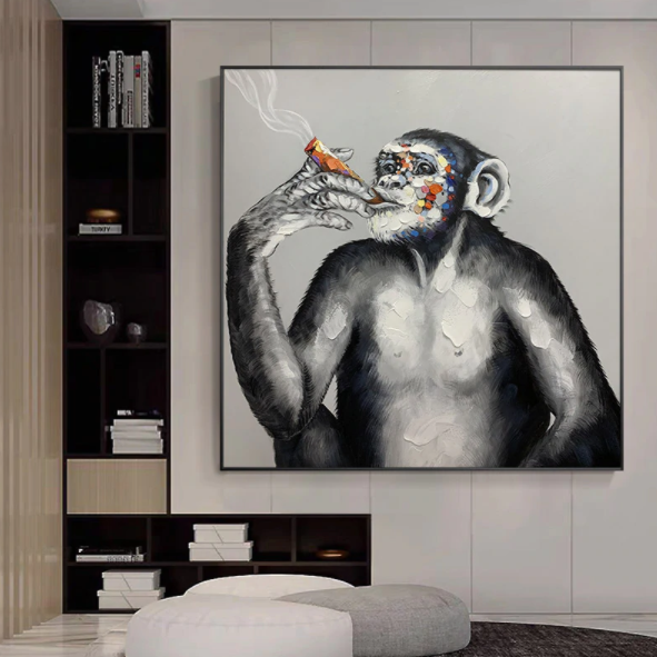Meet 'Koba', one of the coolest monkeys we have ever seen! He is just minding his own business and living his best life! His colorful face creates a beautiful contrast with the black & white background, making this amazing ape almost come alive!