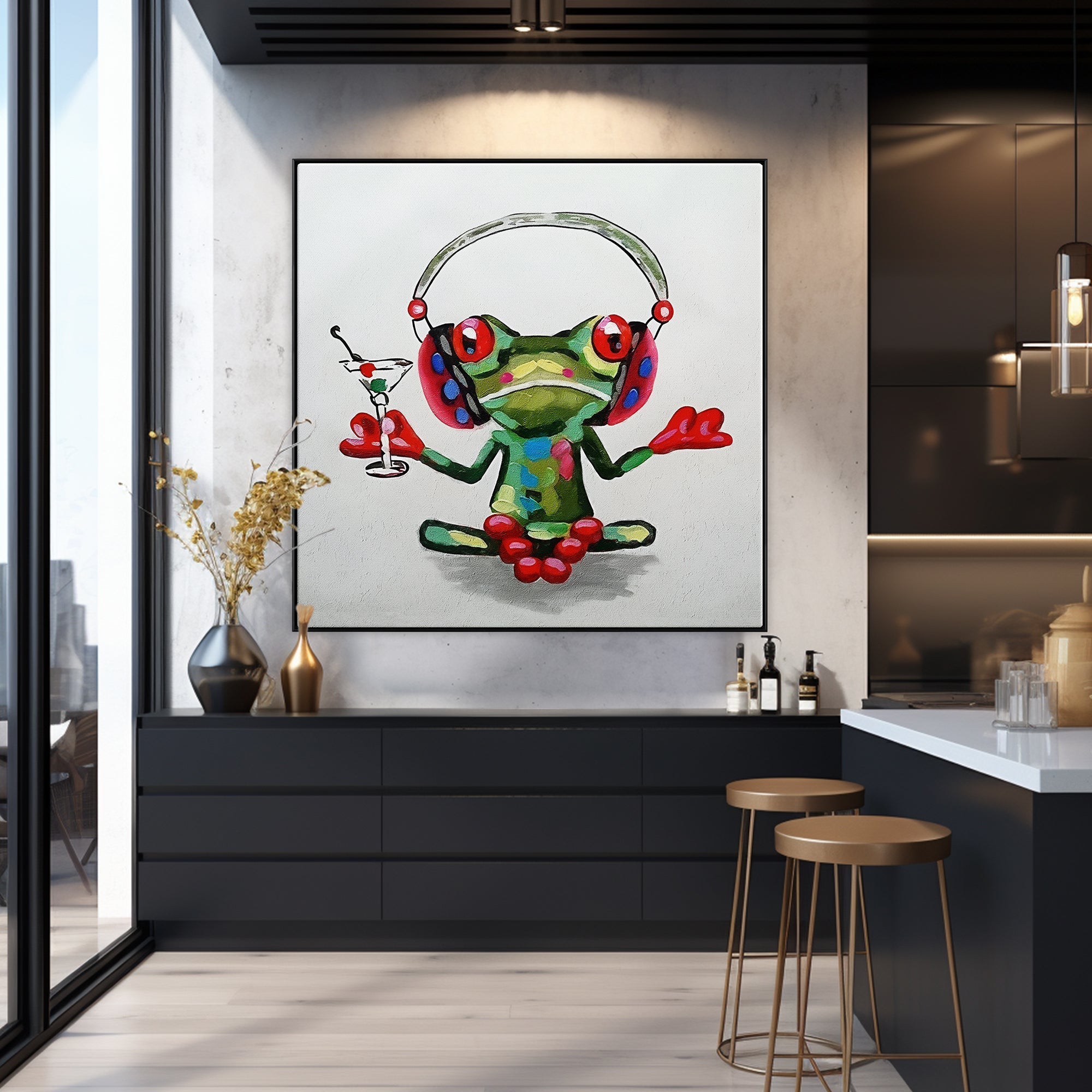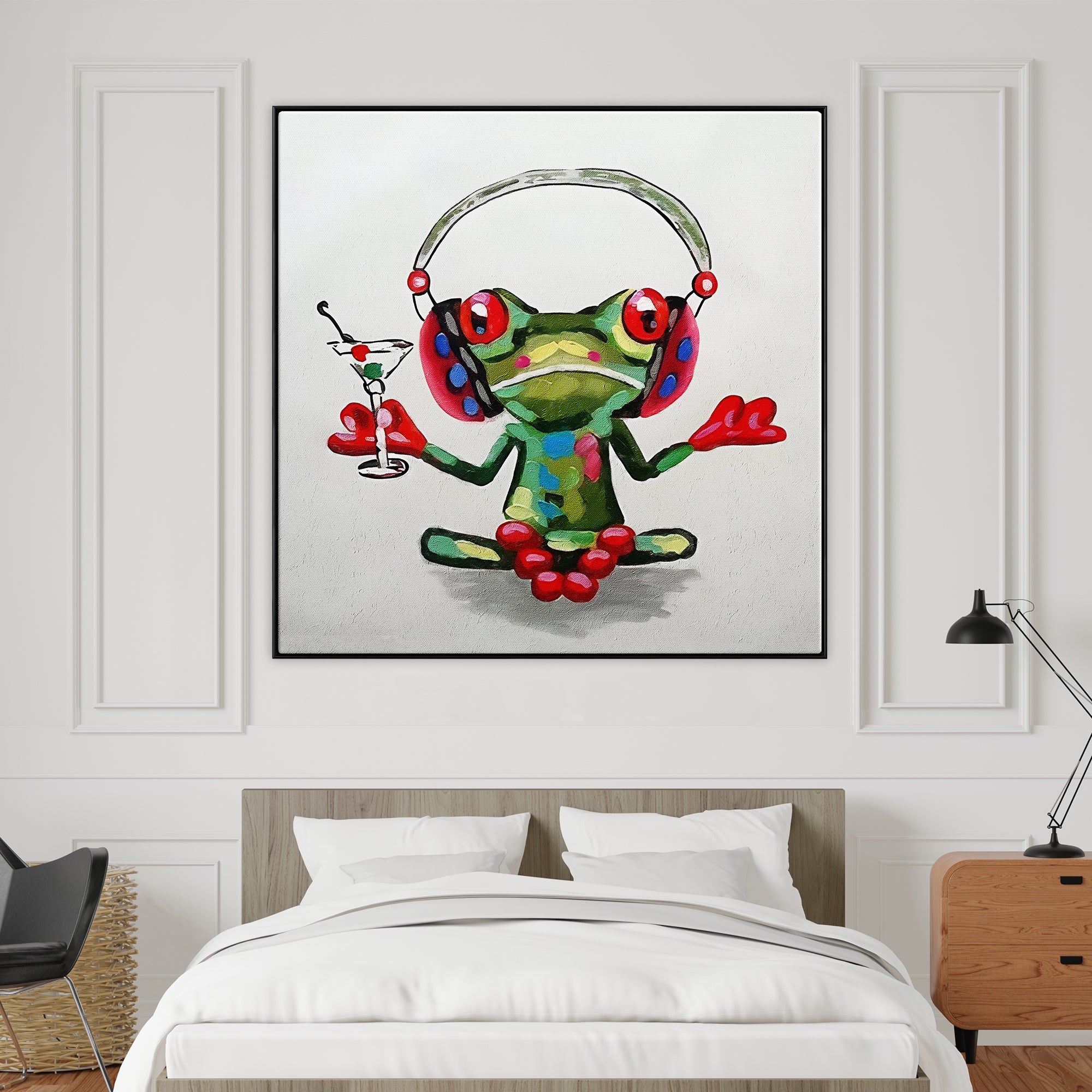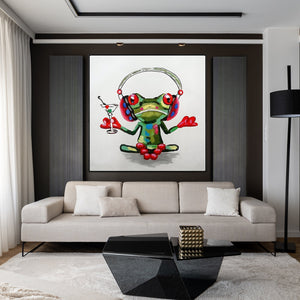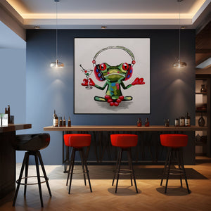 Meet Leonard, he is not unlike any other frog you've seen. He sets the stage for unwinding, complete with headphones and a drink in hand. Reminding you in style that it's okay to relax sometimes and to take a moment for yourself.