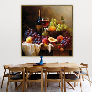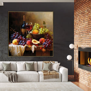 Grapes, wine, and fruits come together in perfect harmony in "Malbec." This captivating still life showcases the beauty of Malbec wine and the bountiful harvest of grapes and fruits in a stunningly realistic style.
