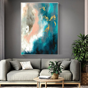 The sheer power and beautiful mysticalness of a meteor condensed in one abstract masterpiece! With its beautiful texture, sophisticated use of colours and warm feeling, this painting lights up any room or space!