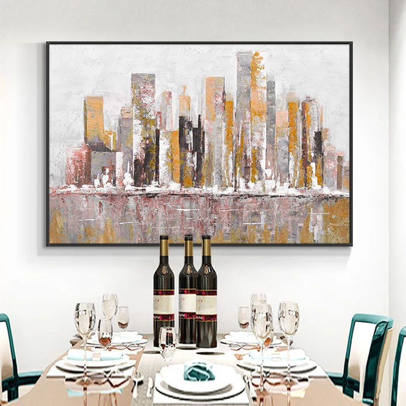 Lost in the city, yet surrounded by its towering embrace. A huge Metropolis that ignites the soul and commands the gaze. This vibrant artwork captures the awe-inspiring allure of a skyline that never ceases to amaze.